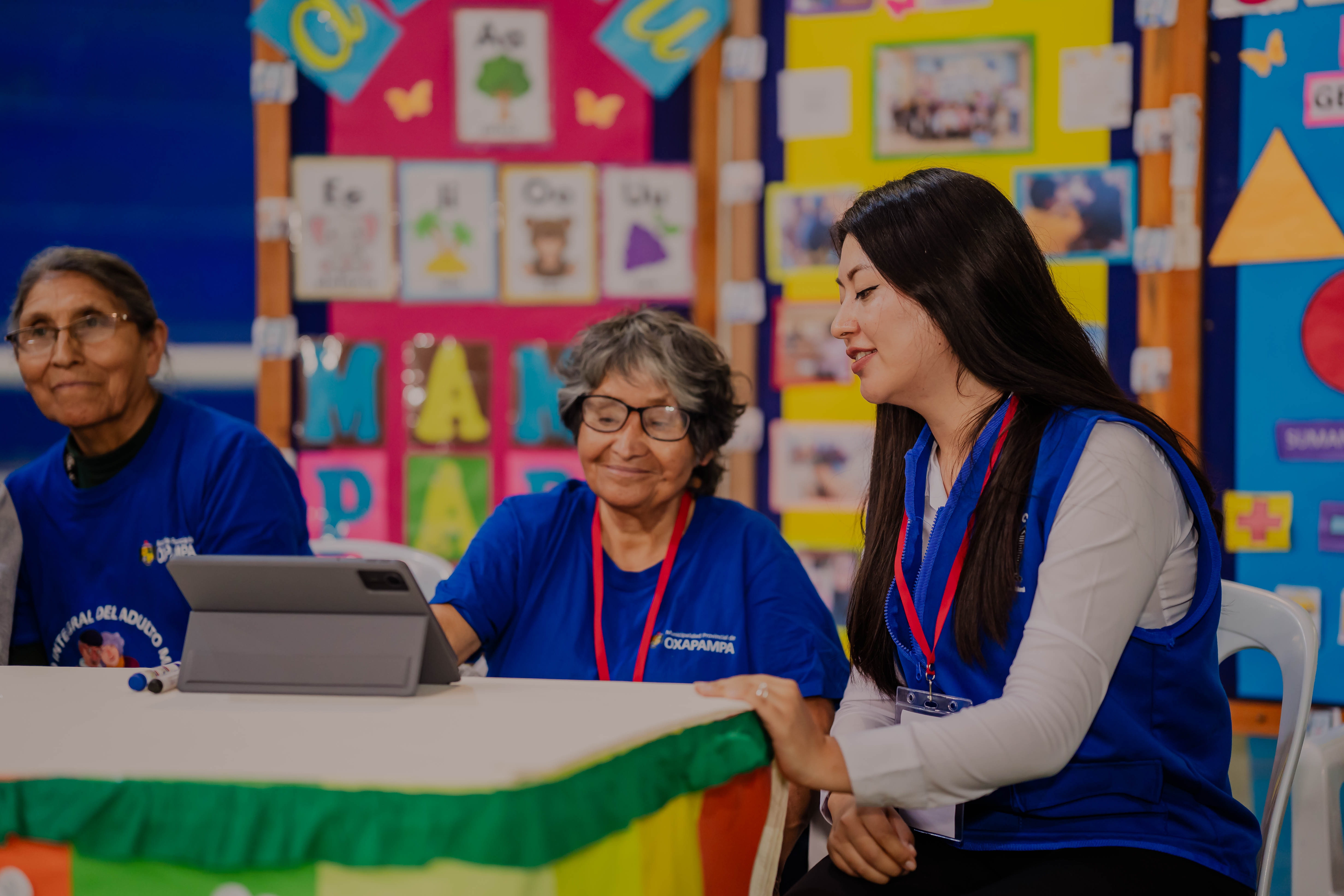 The meeting was organized by Pensión 65’s Pasco Territorial Unit and the Provincial Municipality of Oxapampa, and gathered more than 150 older adults, beneficiaries of the social program, who are currently participating in digital literacy processes through the use of tablets and the FOCUS educational application, complemented by traditional pedagogical tools.