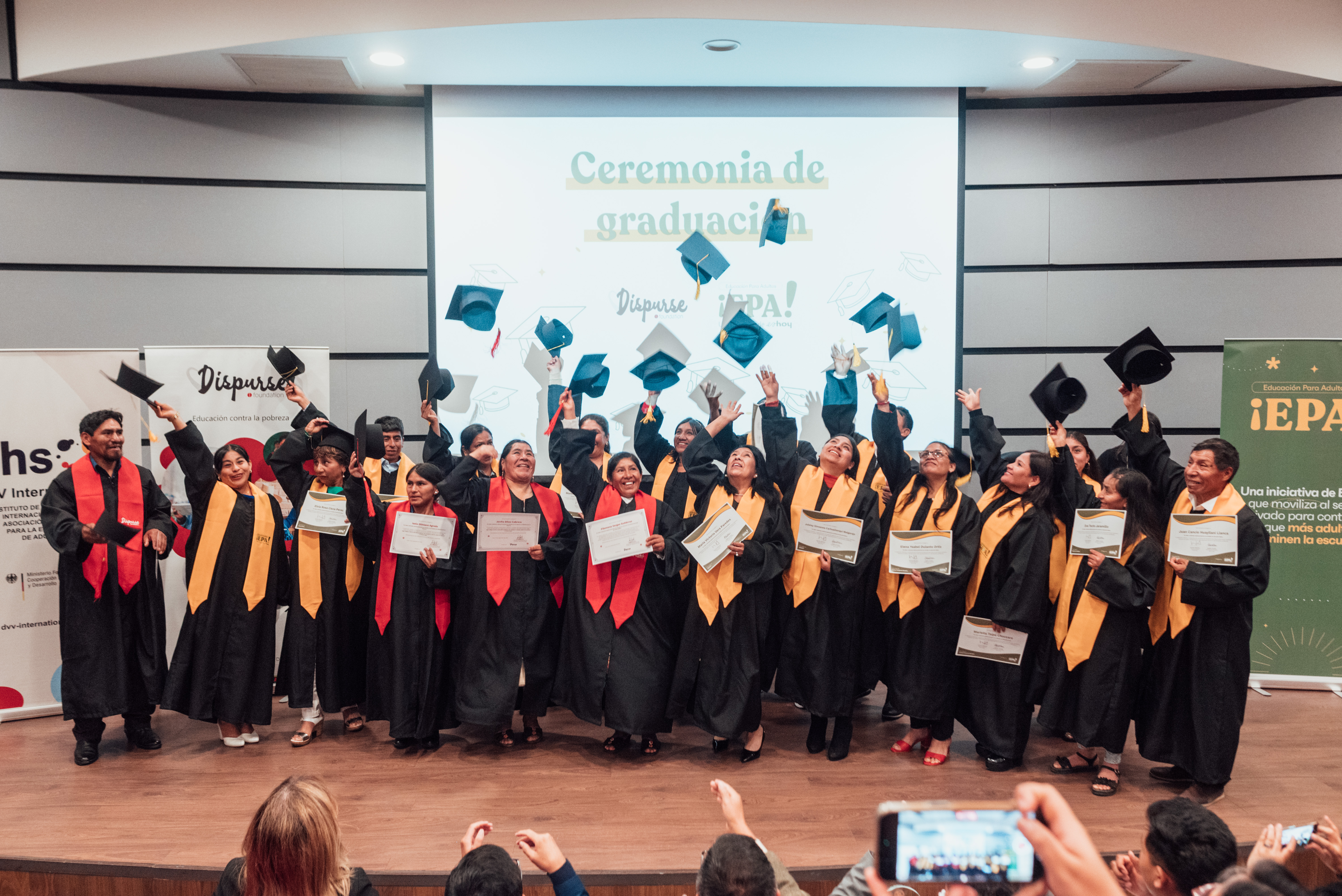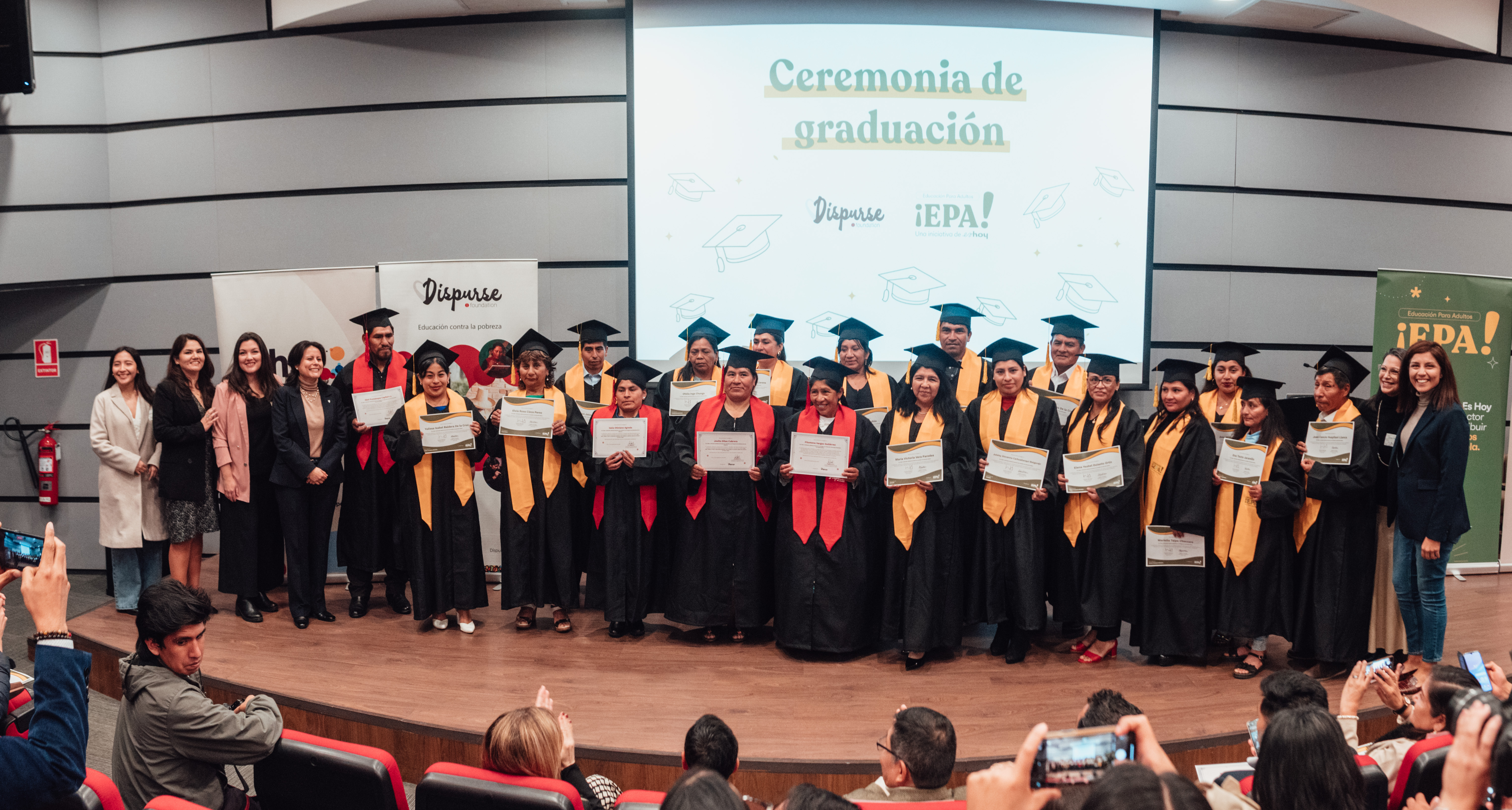 Finally, the event culminated with the symbolic graduation of a group of students from Es Hoy's Epa! program and the Literacy and Community School programs of Dispurse Foundation.